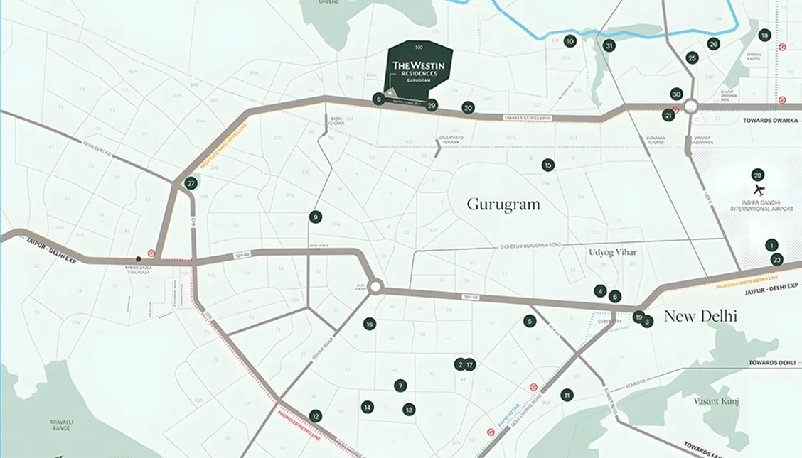 Westin Residences Sector 103 Gurgaon enjoys a prime location on Dwarka Expressway, one of the fastest-growing real estate corridors in NCR. This location offers excellent connectivity and future growth potential.
